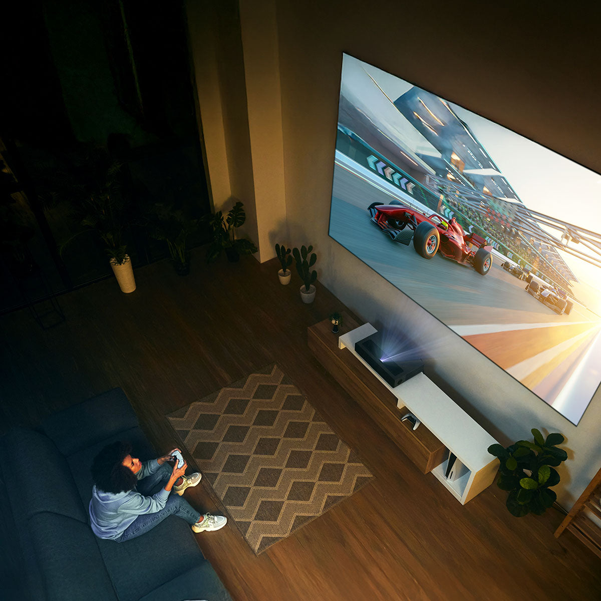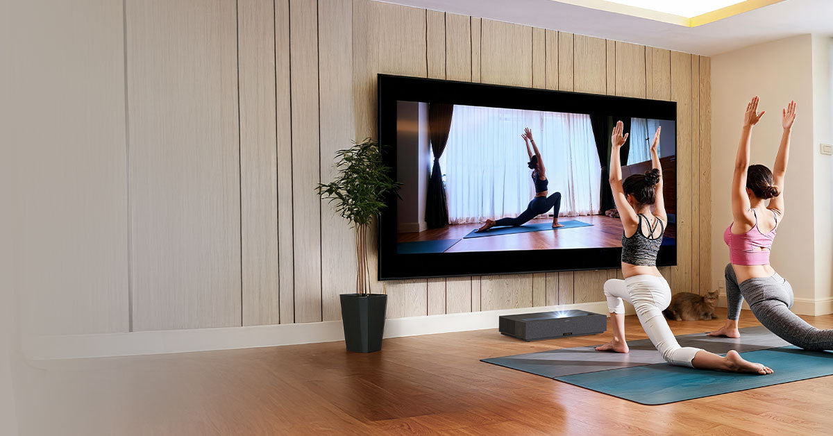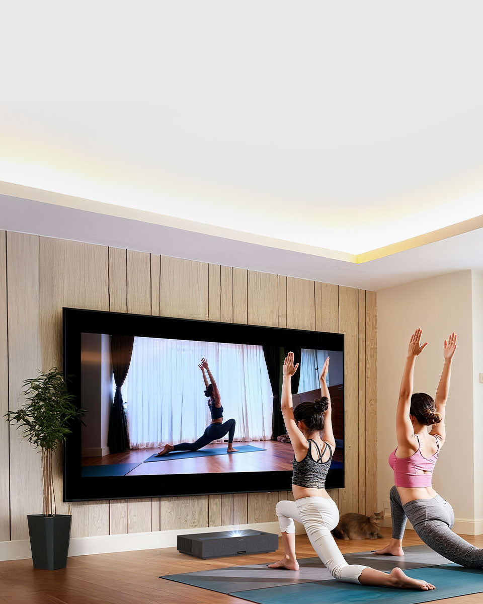 “Turn your living room into an immersive fitness studio. Follow workouts, yoga, or dance routines on a stunning laser TV display for a motivating and interactive exercise experience.”